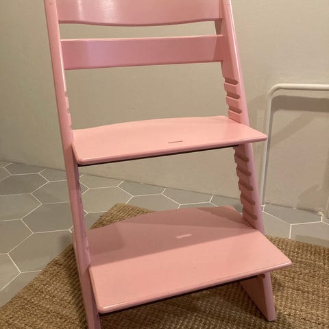 Kirkkaan punainen, lapsen mukana kasvava klassikko Tripp Trapp. Säädettävä istuin ja jalkatuki. Ergonominen valinta ruokapöydän ääreen tai läksyjen tekoon. Materiaali ekologista ja kestävää maalattua puuta. Kahdella lapsella käytössä ollut, elämää jo nähnyt, mutta siistikuntoinen ja ehjä.