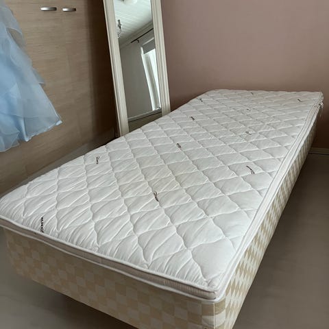 Myytävänä 80cm sänky ilman jalkoja.