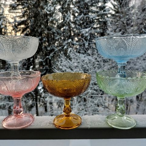 Pieni jalallinen Olympia-malja,kirkas. Korkeus 12,5 cm,halkaisija suuaukosta 12 cm.