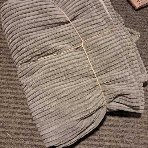 Harmaa/beige päiväpeitto. Ollut käytössä 120 cm leveässä sängyssä, nyt jäänyt ylimääräiseksi. Kuvassa 160cm sänky.