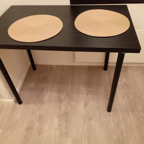 Jatkettava (+40cm) ruokapöytä. Ikeasta ostettu. Tuolit kaupanpäälle tarvittaessa. Tuoleissa kulumaa