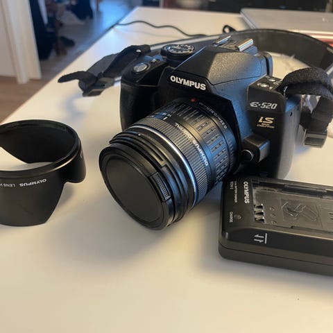 Olympus E‑500 DSLR + 3 objektiivia + tarvikkeet