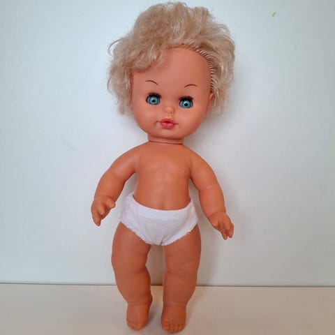 Myydään ainutlaatuinen vintage-nukke kuuluisalta espanjalaiselta Famosa-merkiltä. Tämä on luultavasti suosittu Rumbita Negra -malli tai jotain hyvin samankaltaista, julkaistu 90-luvun puolivälin tienoilla. Se on loistava lisä kokoelmaan tai suosikkilelu.