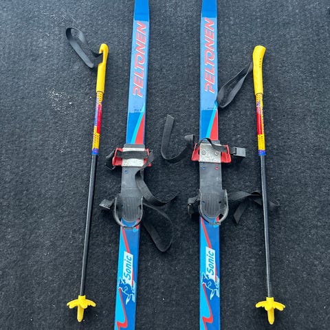 Koko: Suksen pituus on yleensä lapsen pituinen tai hieman lyhyempi (max. 15 cm yli pituuden) helpon hallittavuuden vuoksi.