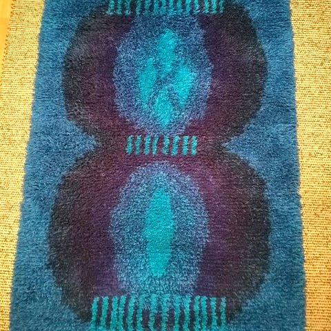 Hyväkuntoinen Elsa Koivun suunnittelema Lyhdyt ryijy. Koko noin 150 cm x 102 cm.