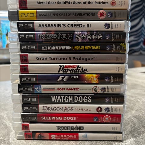 Playstation 3 pelit sisältäen yhteensä 6kpl Assassin's Creed Rogue, Diablo III, Tiger Woods PGA Tour 12 , most wanted , the last of us ja SSX Essentials. Pelit ovat fyysisessä muodossa ja sopivat Playstation 3 konsolille.
