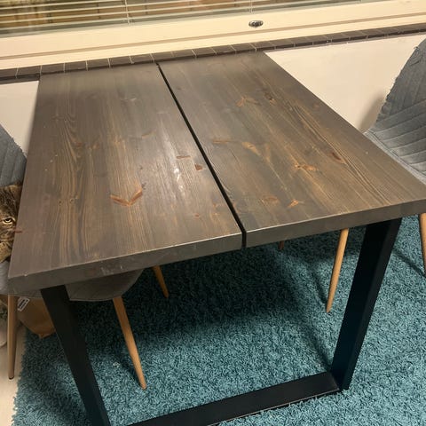 Purettu osiin pöytälankut sekä jalat erikseen ja mahtuu esimerkiksi farmariin helposti.
