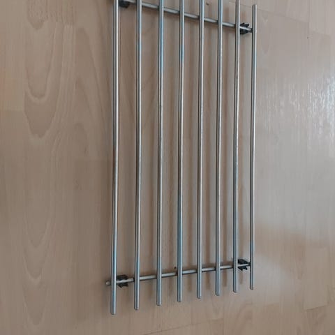 IKEA LÄMPLIG kattilaritilä on valmistettu ruostumattomasta teräksestä. Ritilän mitat ovat 50 x 28 cm. Jalat on valmistettu synteettisestä kumista ja polypropeenimuovista. Ritilä soveltuu käytettäväksi keittiössä esimerkiksi kuumien astioiden alla suojaamaan työtasoja.