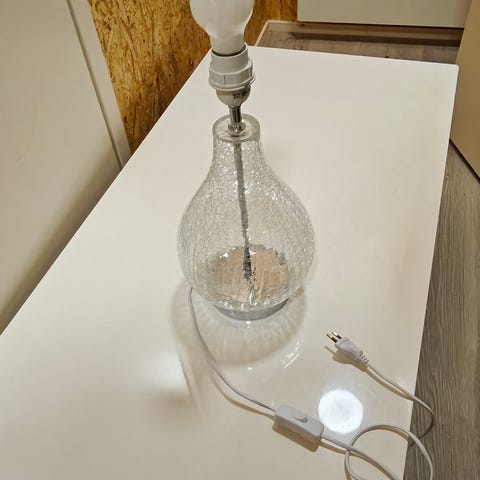 Valaisimen kipsirunko on haljennut päältä lampunkannan kiinnityskohdasta. Korjattu liimaamalla epoxilla ja alumiiniteipillä. Jää varjostimen alle piiloon. Teknisesti täysin toimiva ja sähköturvallinen. Varjostin ei alkuperäinen. Polttimo vanha mutta käyttämätön hehkulamppu. Kysy kimppadiiliä mustan pöytävalaisimen kanssa.