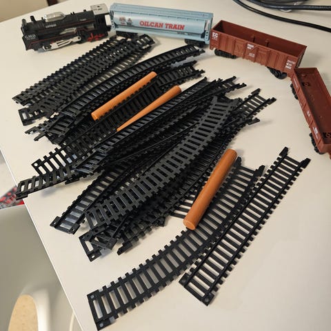 Junarata ja autotalli erinomaisessa kunnossa. Mukaan tulee junia, yksi itsestään liikkuva juna mistä on patterit loppu tällä hetkellä 😁