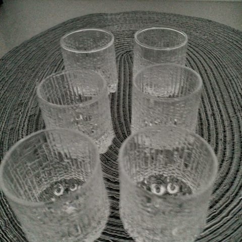 6kpl Tapio Wirkkala ja Iittala snapsilaseja. Siistissä kunnossa, yhdessä lasissa Iittalan tarrasta pinttynyt jälki.