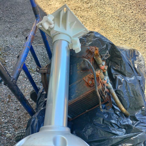 Istuimen jalka, korkeus säätöä hiukan lyhennetty, mitat kuvissa. Sopii useimpiin liukukoneistoihin, merkki Mariven. Nouto.
