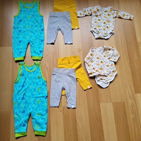 Sisältää bodeja (60-70cm), 8 kpl potkuhousuja (60-62 cm) 4 kpl,2 kpl alushousuja (50 cm) sekä 2 sukat. Postikulut ostajalle.