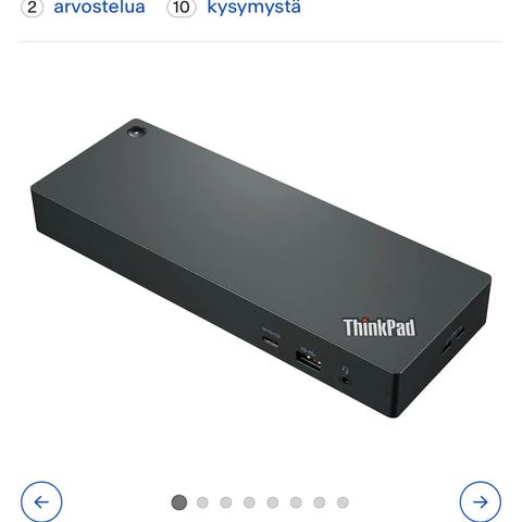 Lenovo ThinkPad telakointiasema, liitännät USB-C, HDMI, DisplayPort, USB 3.0, Ethernet. Sopii Lenovo kannettavien tietokoneiden liittämiseen lisälaitteisiin ja näyttöihin. Telakan lisäksi mukana tulee 300W laturi sekä kaapeli tietokoneeseen liittämiseen.