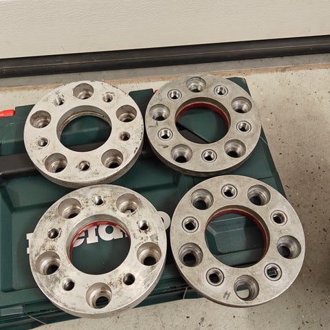 Myydään saksalaiset spacerit 4 kpl. Vain kerran kokeiltu autoon. Ovh. noin 350 Eur. Spacer kiinnitetään mukana tulevilla pulteilla pyöränapaan ja pyörä alkuperäispulteilla spaceriin. Huom: Koska spacerit ovat 20mm leveitä on saman verran tilaa pyöränpulteille.