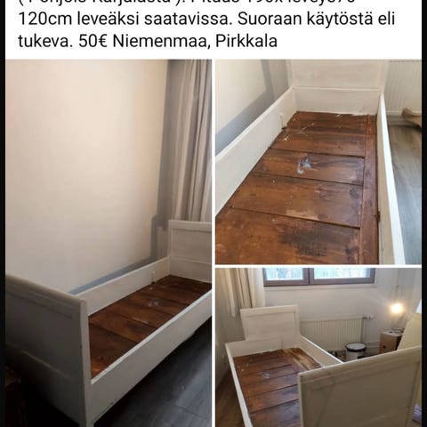 Myydään allergian vuoksi uusi puinen 120x200 pylväs sänky. Ensimmäinen kuva antamassa osviittaa miltä näyttäisi verhojen kanssa,ei ole täysin sama sänky