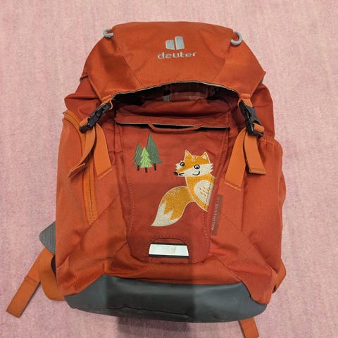 Hyväkuntoinen Deuter Kid Comfort lasten reppu. Reppu sopii parhaiten 98cm - 116 cm pituisille lapsille.