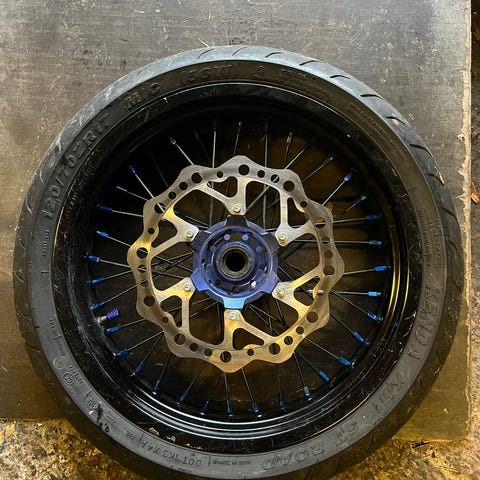 Uudet renkaat ja ajamattomat vanteet. 25mm akselit molemmissa. Ei holkkeja mukana eikä varmaa tietoa mihin pyörään sopii. Piti sovittaa Yamahaan mutta en saanut koskaan aikaiseksi.