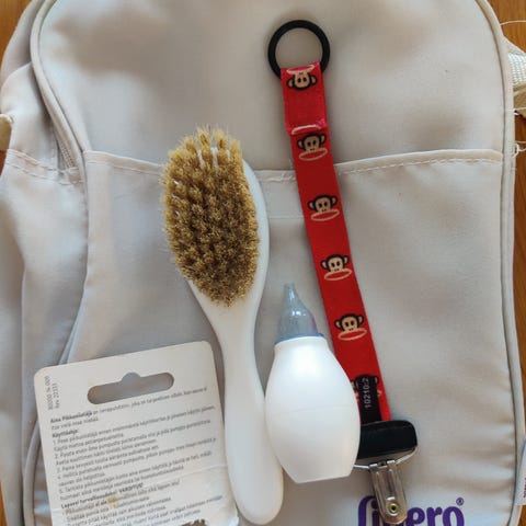 Annetaan vauvan peitto, 5 kpl pussilakanoita, 2 kpl makuupusseja, pinnasängyn reunapehmuste, viltti ja hoitoalusta.