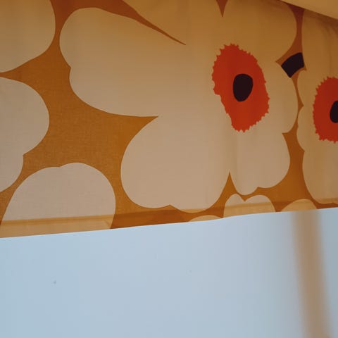UUSI ainoastaan kokeiltu ikkunaan. Uusi unikkoväri. Kuvassa värit hieman vaaleammat kuin on. Kaunis verho kevääseen.