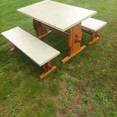 Pöydän mitat: pituus 85 cm, leveys 49,5 cm, korkeus 56 cm.