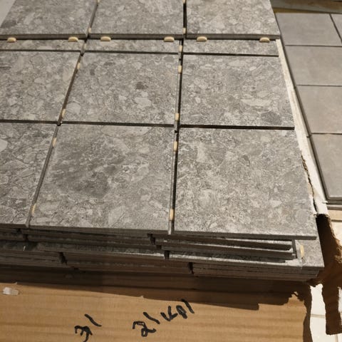 Uutta harmaata lattialaattaa 45cm x 45cm näitä on 11kpl eli noin 2.2 neliöö. Näissä on kulmissa pientä värivikaa näkyy kuvassa.