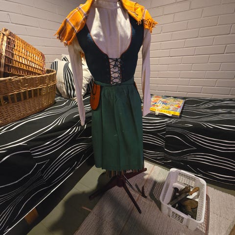 Myydään Sulkavan kansallispuku, missä kaikki osat mukana. Hame, essu, paita, liivi, tykkimyssy, päänauha, laukku sekä koru. Puku on hyväkuntoinen ja puhdas.