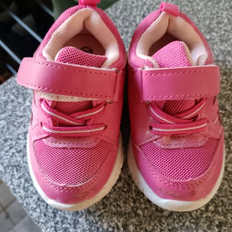 Pienten taaperoiden lenkkarit. Toinen kiristyslenkki puuttuu. Vähän käytetty, tarkempi putsaus jää ostajalle. Koko 20, mutta on varresta tiukka, eli ei sovi pulleajalkaiselle.