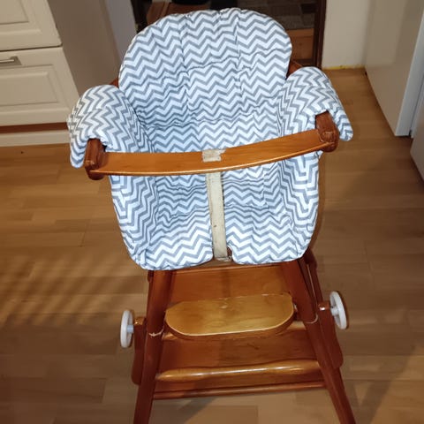 Syöttötuoli ylimääräisenä. Ollut mummola käytössä. Katso kuvaa 2, toinen tappi puuttuu