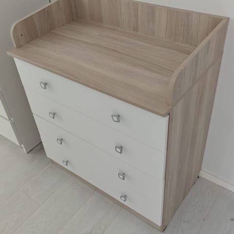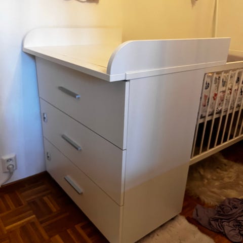 Troll Nursery Torsten lipasto ja hoitotaso muodostavat kauniin, tilavan ja tukevan hoitopöytä /säilytyslipasto kokonaisuuden.
