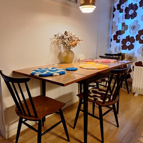 Kurt Hvitsjön suunnittelema 50-luvun ruokailuryhmä jatkettavalla pöydällä