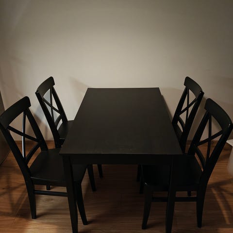 Ikea Lerhamn malliston puinen ruokapöytä ja tuolit 2kpl. Toisessa haalea tahra, muuten hyvässä kunnossa. Tukevat eivätkä nitise tai natise. Voidaan kuljettaa lähelle pientä maksua vastaan.