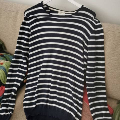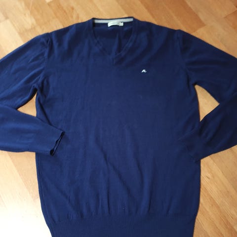 Sininen merinovillasekoitteesta tehty neule (50%). Koko noin L.
