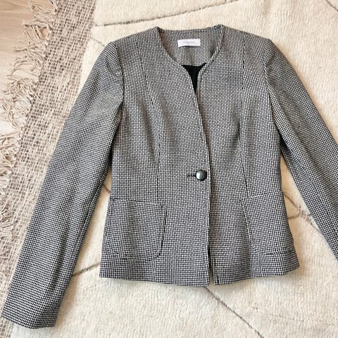 Käyttämätön hopeanharmaa bleiseri/jakku jossa seassa kiiltävää neulosta. Erittäin kaunis, ei pääse kuvassa edukseen.