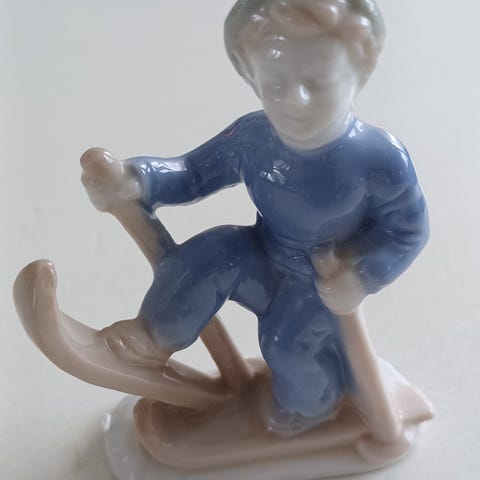 Posliinifiguuri poika ja kirja. Korkeus 12 cm ja leveys 5cm. Ehjä ja siisti figuuri.