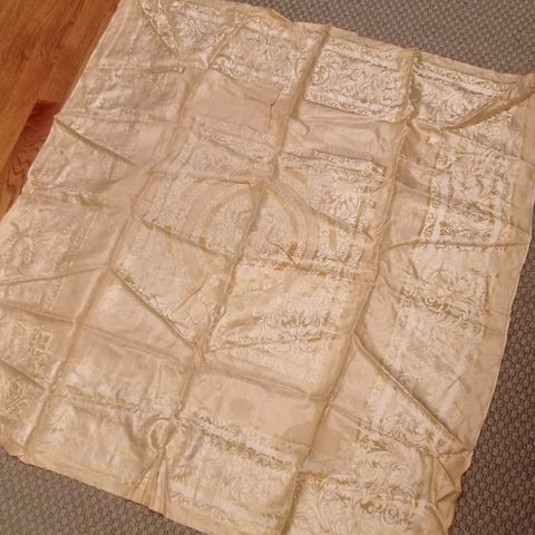 Huopamainen, muutaman millin paksu, alla liukuestepinnoite; kangaskaupasta aikoinaan ostettu. Voi leikata sopivan kokoiseksi. Pitää liinan tiukasti pöydällä; täydellinen pienten lasten kans. Huopaa pystyy pesemään 60 asteessa; meillä pesty hajusteettomalla pesuaineella. Reunoissa hieman tummaa nukaa, ks kuvat. Etunoljakassa, mutta tarvittaessa kulkeutuu omien menojen mukaan myös muuallepäin Joensuun kantakaupungin alueella. Koiratalous, mmm.