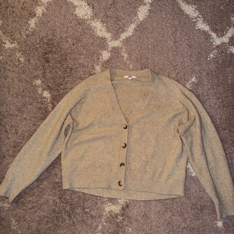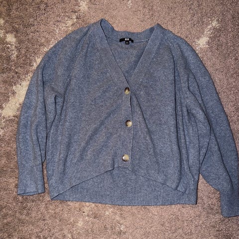 Ihanan pehmeä ja lämmin Uniqlo neuletakki koko XL, mutta vastaa mielestäni L-kokoa. Selässä pieni kolo, ks. Kuva. Ei haittaa käyttöä. Väri näkyy parhaiten viimeisessä kuvassa. Ei ole ihan niin oranssi miltä näyttää muissa kuvissa.