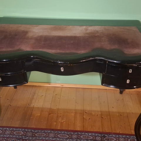 Kirjoituspöytä kolmella vetolaatikolla, joista yksi lukollinen.