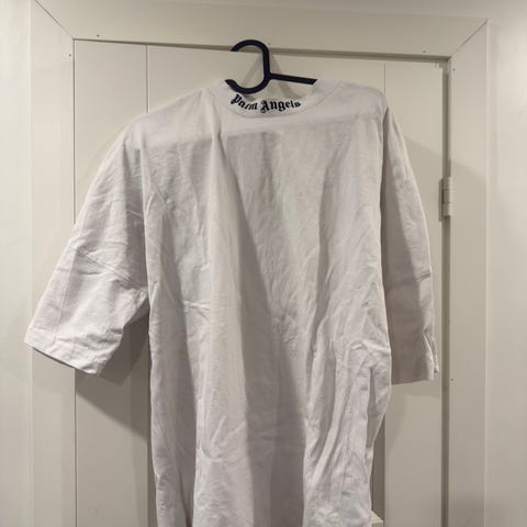 Palm Angels miesten t-paita, koko L, musta väri. Valmistettu puuvillasta. T-paidassa on Palm Angels -logo kauluksen ympärillä ja selässä.