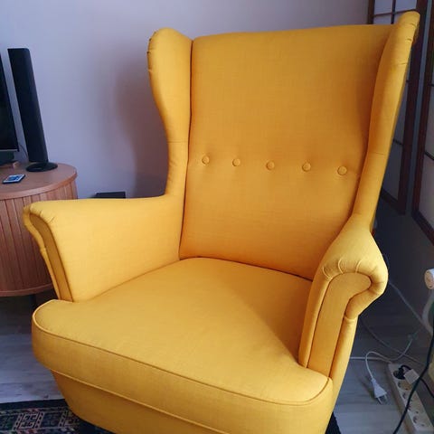 Ostetaan BEIGE Strandmon nojatuoli ja rahi jos löytyy.