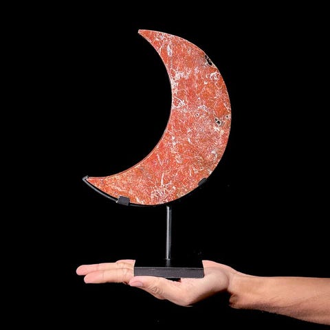 Ihana kiillotettu puolikuun muotoinen, punaisesta Maligano Jaspiksesta valmistettu, mittatilaustyönä tehdyllä jalustalla.Punainen jaspis on kvartsin lajike, joka kuuluu chalcedony-ryhmään. Se tunnetaan rikkaasta punaisesta väristään ja sitä käytetään usein jalokivenä tai erilaisissa koruissa. Uskotaan, että punaisella jaspiksella on erilaisia metafyysisiä ominaisuuksia, ja sitä pidetään maadoittavan, vakauden ja voiman symbolina.Noin mitat jalustan kanssa.Korkeus : 28,5 cmLeveys: 18 cmVastuuvapautukset:Ole hyvä ja huomioi, että nämä kuvat on otettu pimeässä studiolla, ja värit voivat vaihdella ympäristön mukaan.> MAINITTU PAINO SISÄLTÄÄ PAKKAUSMATERIAALIN.LähetysKohde lähetetään seurantanumerolla DHL Parcelin, DPD:n tai postNlin kautta. Seuranta päivittyy Catawiki-luettelossasi, kun pakettisi on jätetty postiin.Ole hyvä ja tarkista säännöllisesti välttääksesi pakettisi palautumisen meille, jolloin ostaja vastaa toisen lähetyksen toimituskuluista.Seurantaan Espanjaan ja Portugaliin käytä tätä linkkiä ja lisää Catawiki-erästäsi saatu seurantanumero.https://clientesparcel.dhl.es/LiveTracking/HomeME EMME YHDISTÄ TOIMITUKSIA!!!Jos sinulla on kysyttävää paketistasi, ota meihin yhteyttä Catawiki-viestipalvelun kautta. Pyrimme vastaamaan kolmessa työpäivässä.
