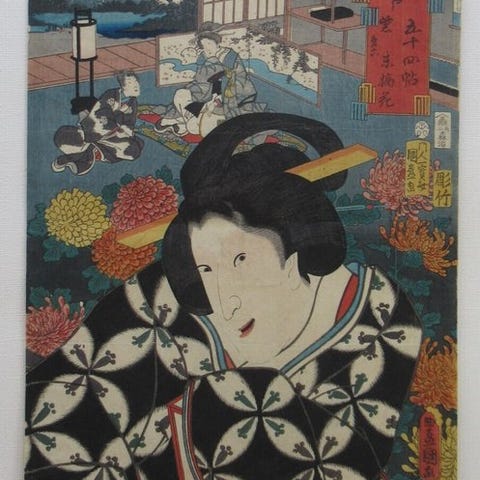 Alkuperäinen puupiirros vuodelta 1870.Taiteilija: Ochiai Yoshiiku (1833-1904)Kunto: Ikään nähden sopiva. Joitakin vaurioita ja likaa yleisesti. Pieniä ryppyjä.Toimitus tapahtuu Japan Postilta, pakattu turvallisesti, seuranta vakuutettu.Se ei ole 'express air', vaan 'tavallinen', ja toimitusaika on noin 2-3 viikkoa.