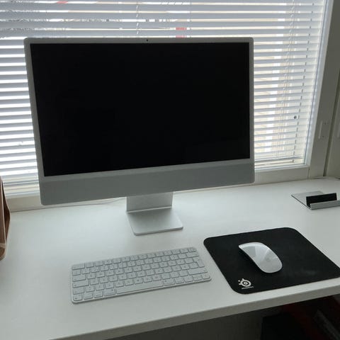 Myydään erittäin siisti ja täysin toimiva hopeanvärinen iMac 24” (2021); speksit: Apple M1, 16 GB RAM ja 1 TB SSD, macOS asennettuna ja kone tyhjennetty sekä valmis uudelle käyttäjälle; mukana Apple-näppäimistö, Apple-hiiri ja virtajohto; kunto erinomainen eikä vikoja, ei alkuperäistä laatikkoa; nouto Helsingistä (tai sopimuksen mukaan)