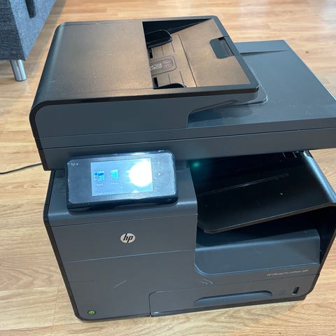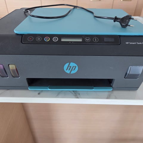 Ikää on ja ulkokuoressa käytön jälkiä, mutta toimii ja tulostaa.