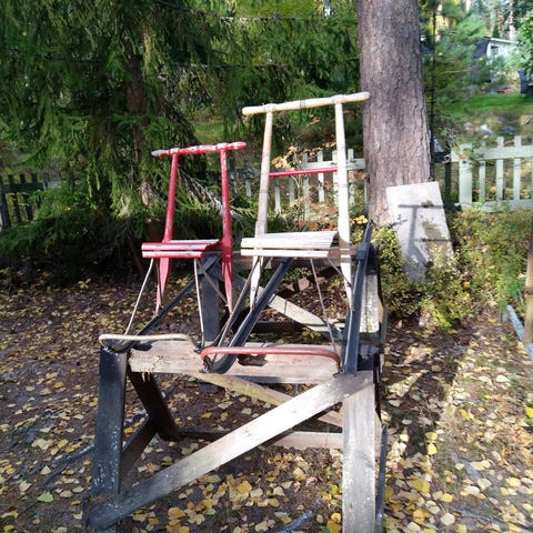 Potkukelkkateline , johon voi kiinnittää tavalliset laskettelusukset. Sukset kuuluvat kauppaan 100€ / tarjous. Nouto Ruskesannasta