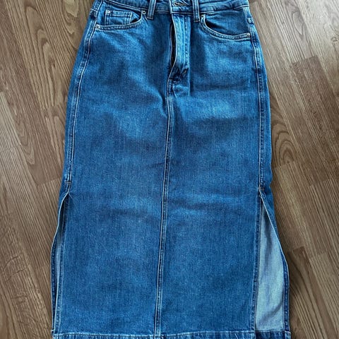 H&M Denim farkkuliivi sininen, koko 36. Takissa on denimmateriaali ja se on suunniteltu naisille. Takissa on napillinen etuosa, kaksi rintataskua ja niitit olkapäillä. Takissa ei ole hihoja.