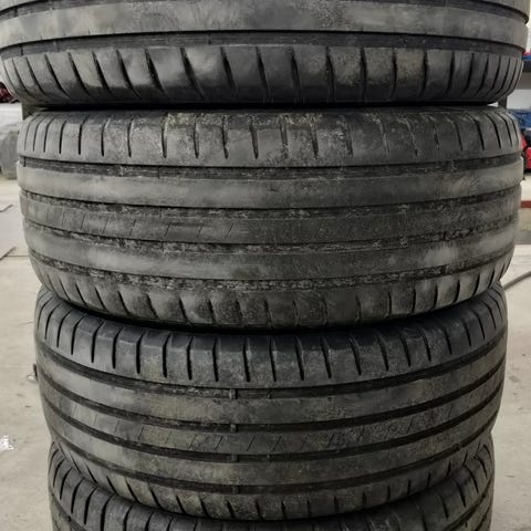 Pintaa renkaissa noin 8,5mm. Tasaisesti kuluneet. Paisto 37/22.