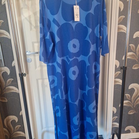 Erinomaisessa kunnossa kaunis Marimekon Majus unikko mekko. Koko S mutta menee hyvin myös M kokoa käyttävälle. 60% kupro ja 40% viskoosi. Sivuilla taskut.