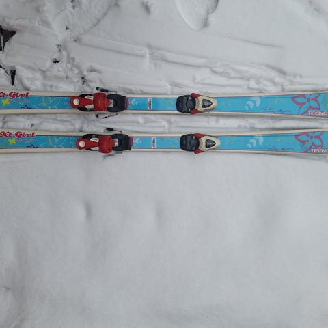 Hyväkuntoiset ja laadukkaat TecnoPro XT Girl 120cm laskettelusukset. Siteet TecnoPro TC45.