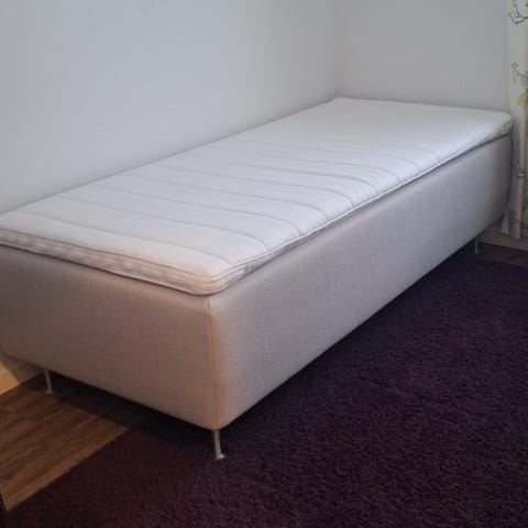 Myydään Jyskin betoninharmaa / valkoinen sänky 90 x 200. Kaksi tilavaa säilytyslaatikkoa sängyn alla. Hintaan sisältyy vaahtomuovipatja. Sänky ollut käytössä 1-2 vuotta.